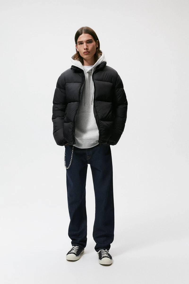Zara Mens Blue Black DNWR Hooded Winter Snow Puffer Jacket Coat Sz L NWT | eBay