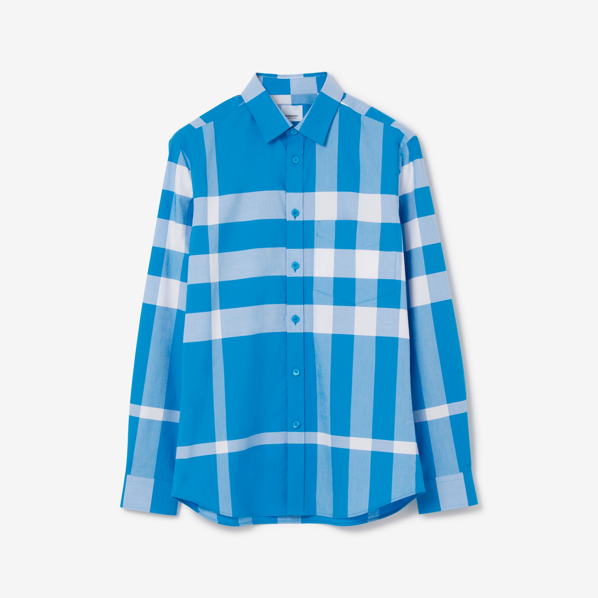 Check Stretch Cotton Poplin Shirt in Vivid Blue - Men | Burberry® Official