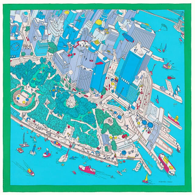 Hermes Silk Scarf “The Battery New-York” by Ugo Gattoni. – Hermes Emporium