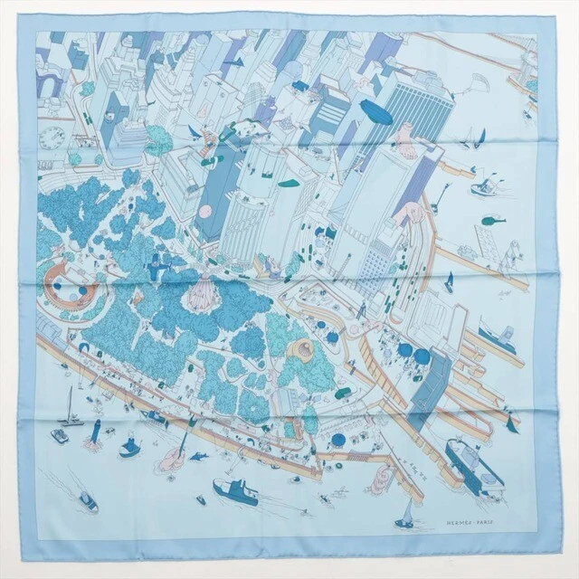 Hermes Carre 90 silk 100% scarf THE BATTERY NEW YORK blue color Ladies used | eBay
