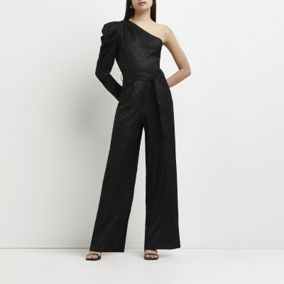 Black one shoulder wide leg jumpsuit