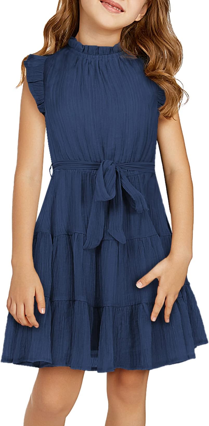 blibean Tween Girls Elegant Dresses Kids Summer Ruffle Sleeve Dress Size 4-15 Years Old