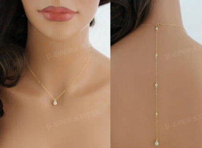 4Ct Pear Simulated Diamond Backdrop Necklace 8 Inch Drop,14K Yellow Gold Plated | eBay