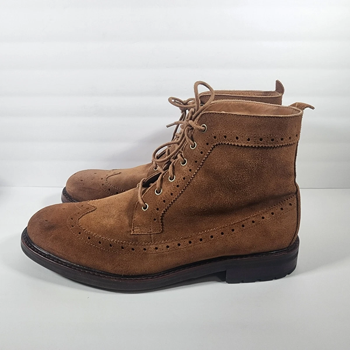 Polo Ralph Lauren Nickson Suede Wingtip Boots 12D Tan Brown Brogue Leather | eBay