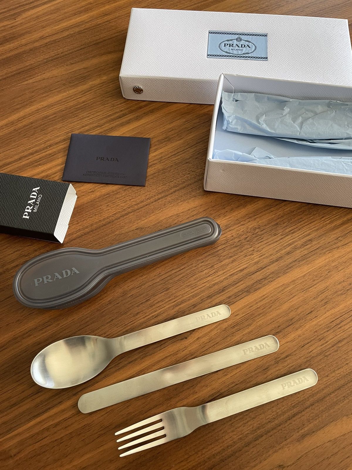 Prada Silver Tone Encased Cutlery Set Release | Hypebeast