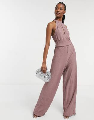 Vila Halter Neck Jumpsuit with Wide Leg in Pink