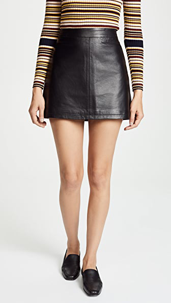 high Waist Real Leather Mini Skirt