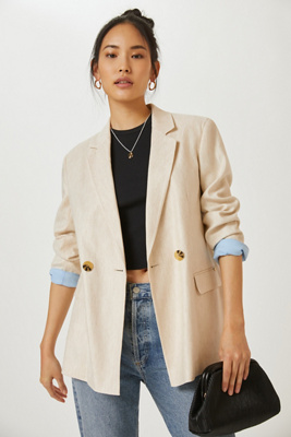 Single-breasted linen-blend blazer